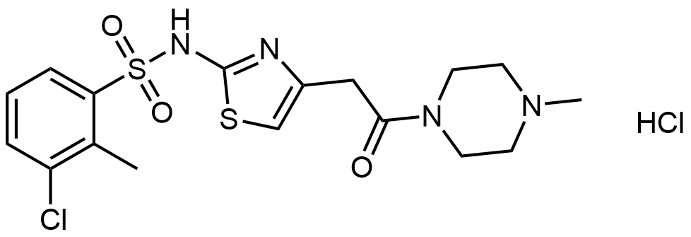分子式: C17H21ClN4O3S2.HCl 分子量:428.95 36.46 CAS号:376641-65-5