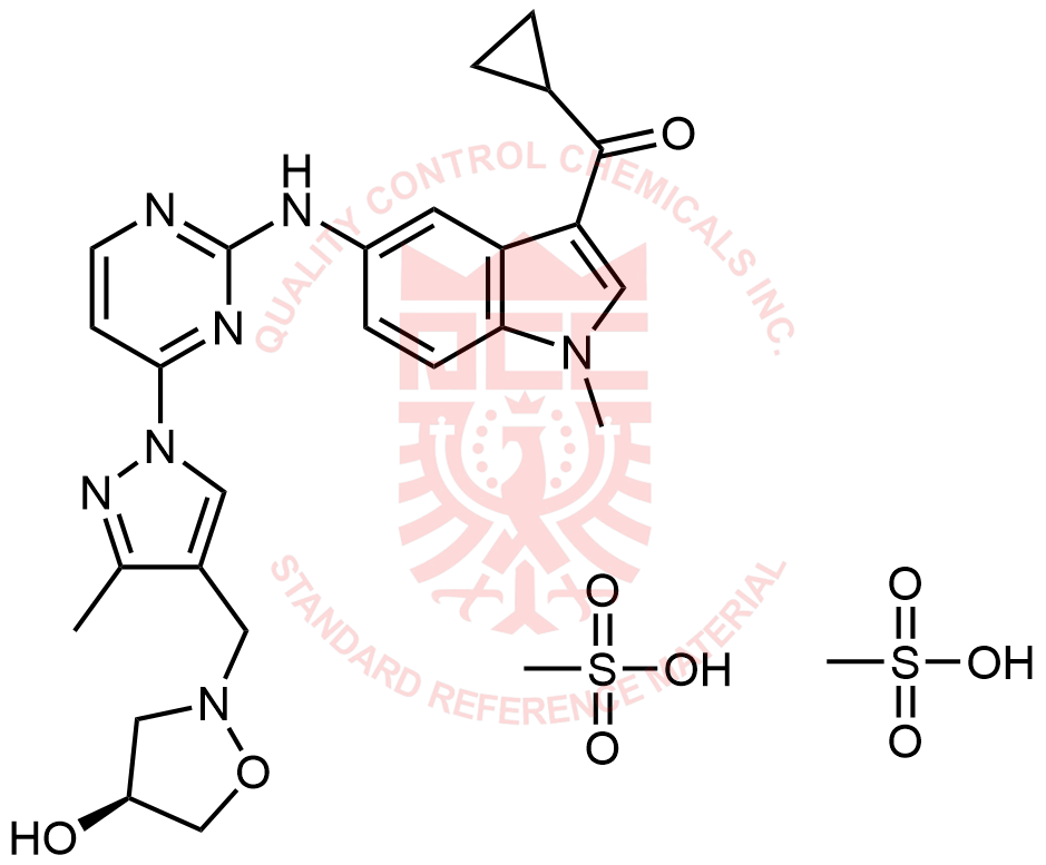分子式: C25H27N7O3.2CH4O3S 分子量:473.54 192.20 CAS号:2043659-93-2
