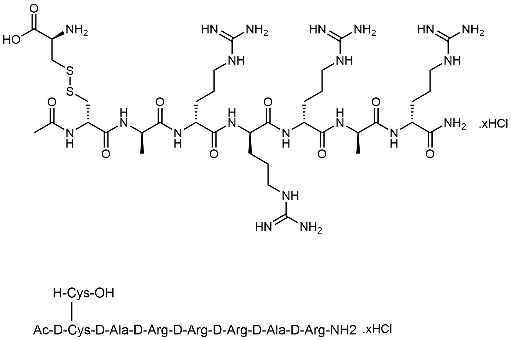 分子式: C38H73N21O10S2.xHCl 分子量:1048.26 36.46x CAS号:1334237-71-6;1262780-97-1(free base)